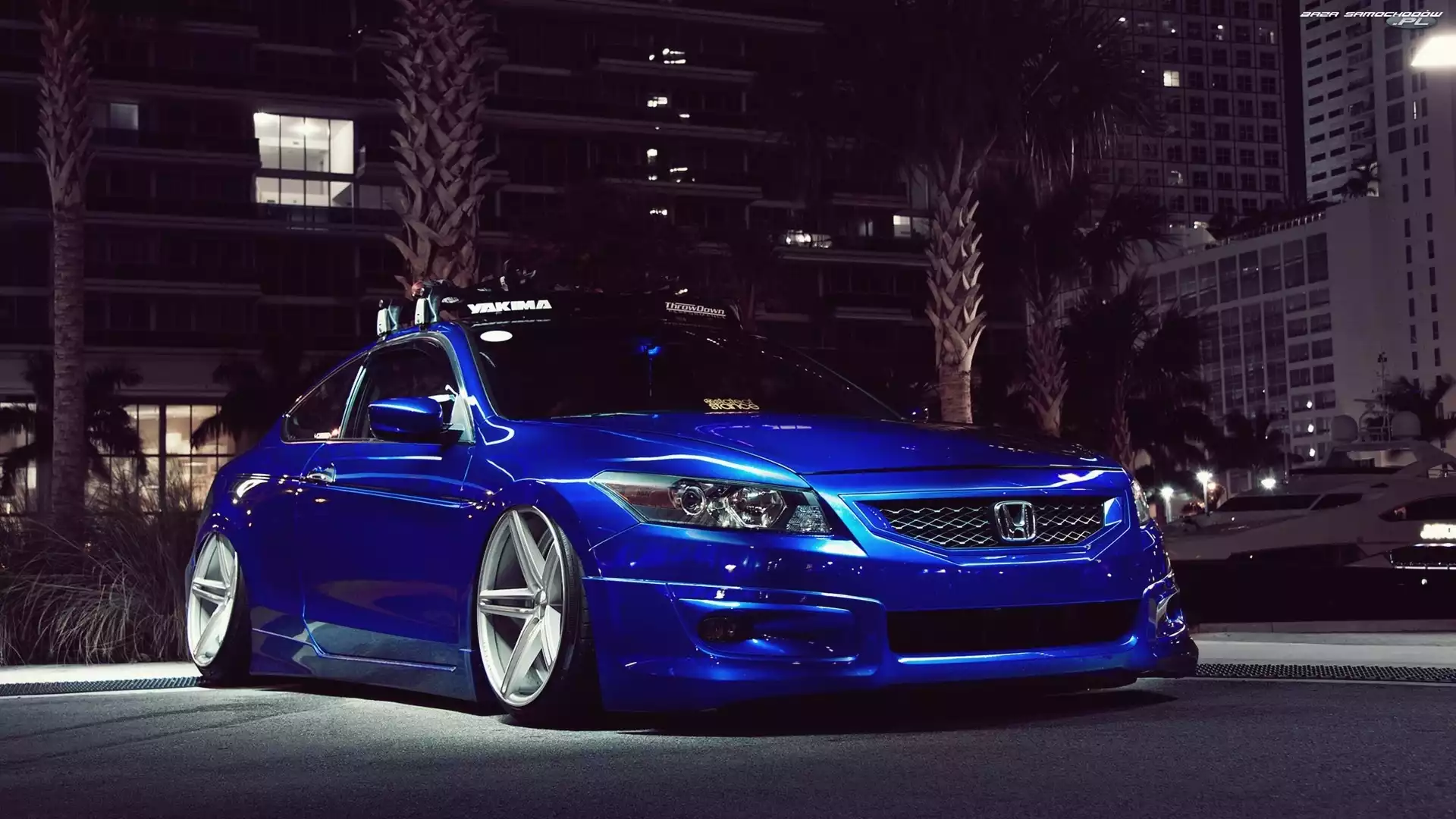 Niebieska, Honda, Felgi, Noc, Accord, Miasto- Zdjęcia samochodów