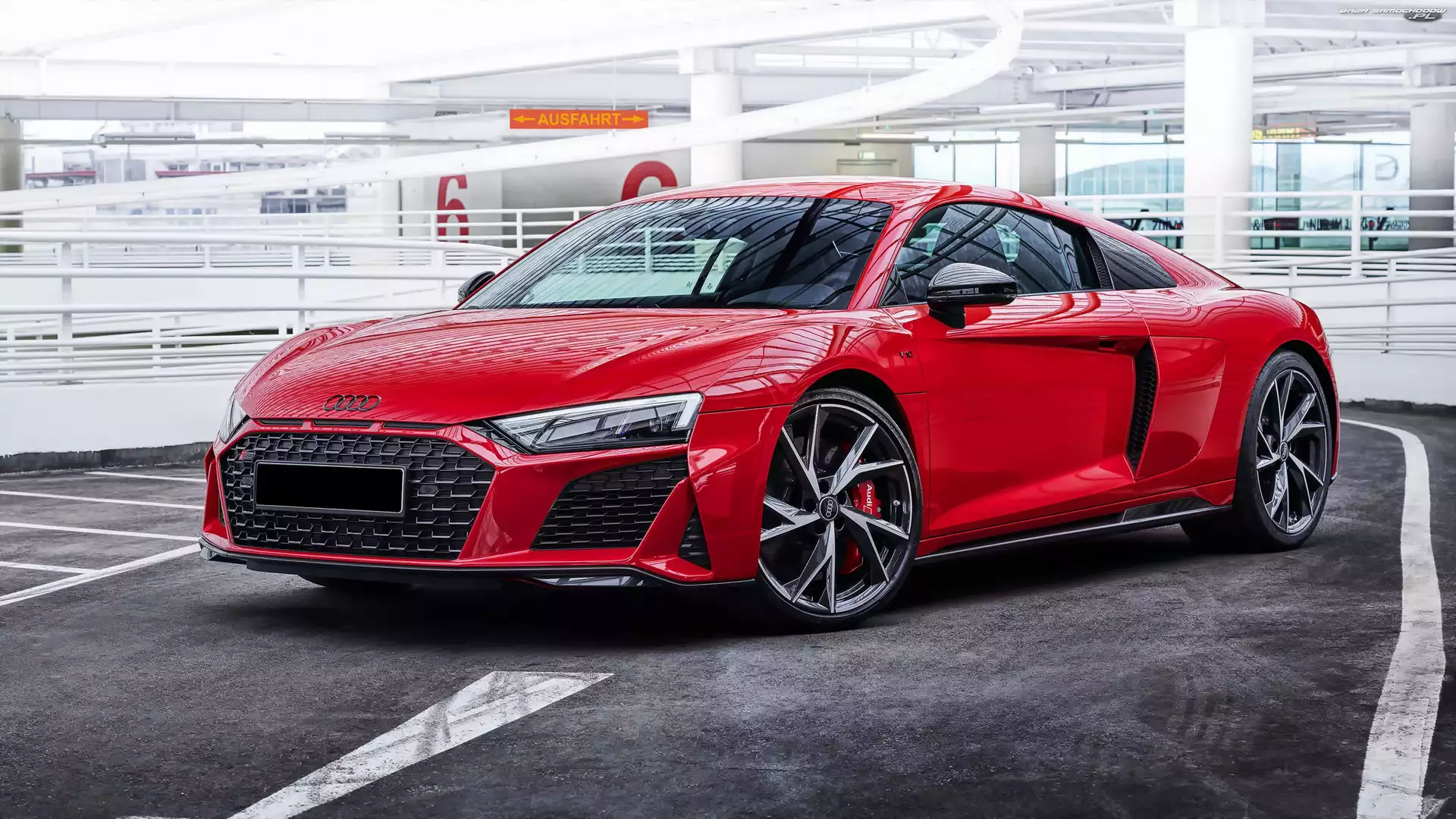 Czerwone, Audi R8 Performance V10, Coupe- Zdjęcia samochodów